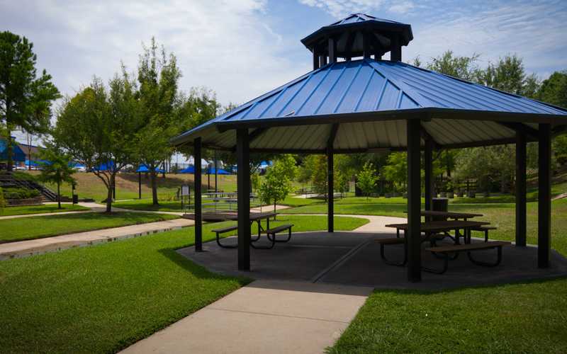 Shade is an important amenity for any park in Texas. Ricewood Park’s gazebo and shade structures provide large amounts of shade for park goers to enjoy during hot, Texas summers.